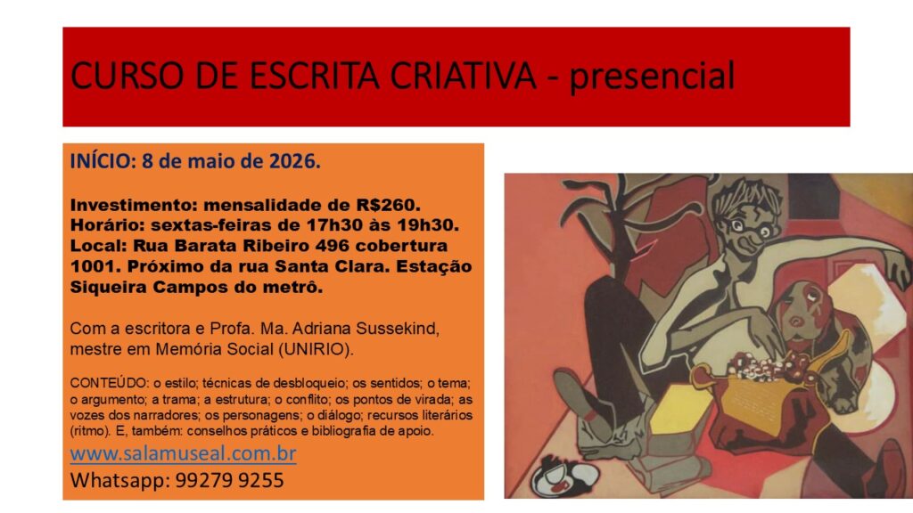Curso Presencial de Escrita criativa, com Início em 8 de maio de 2026, sexta-feira, de 17h30 às 19h30, com…